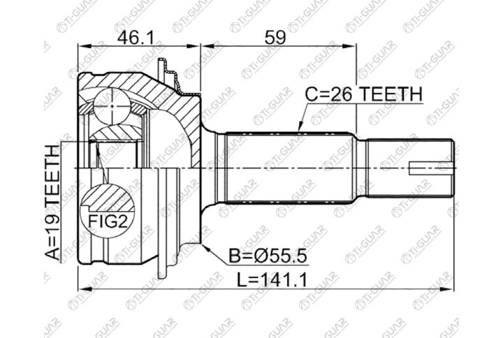 ШРУС наружный /TI-GUAR для Toyota Vitz 2005-2008 Belta Yaris 2005-2007 /19*55.6*26; TG-95107; (TO-107) 4341052180 4342052180 4347059795